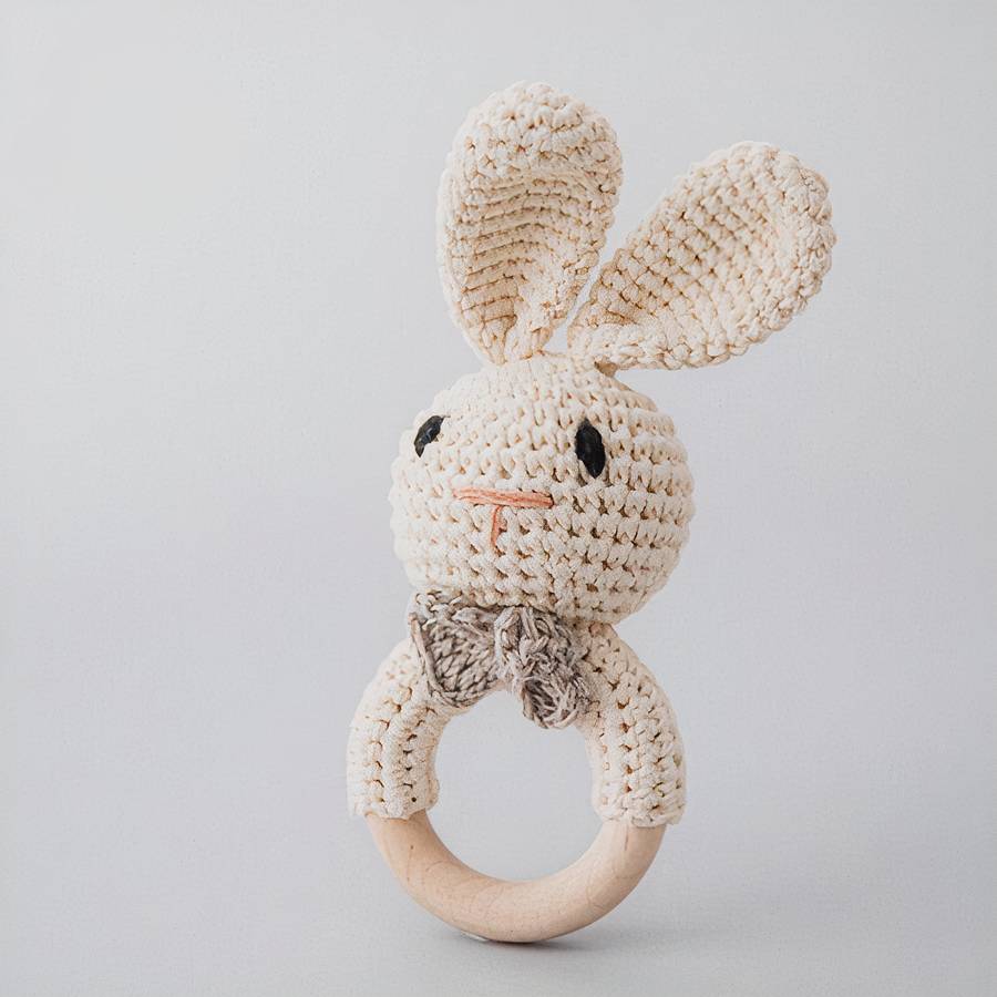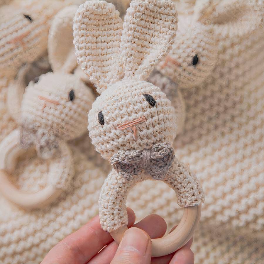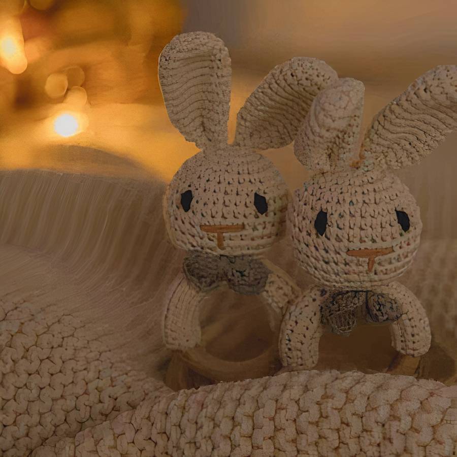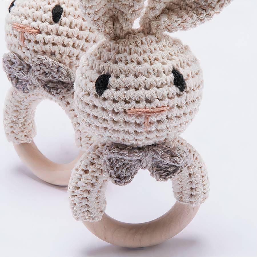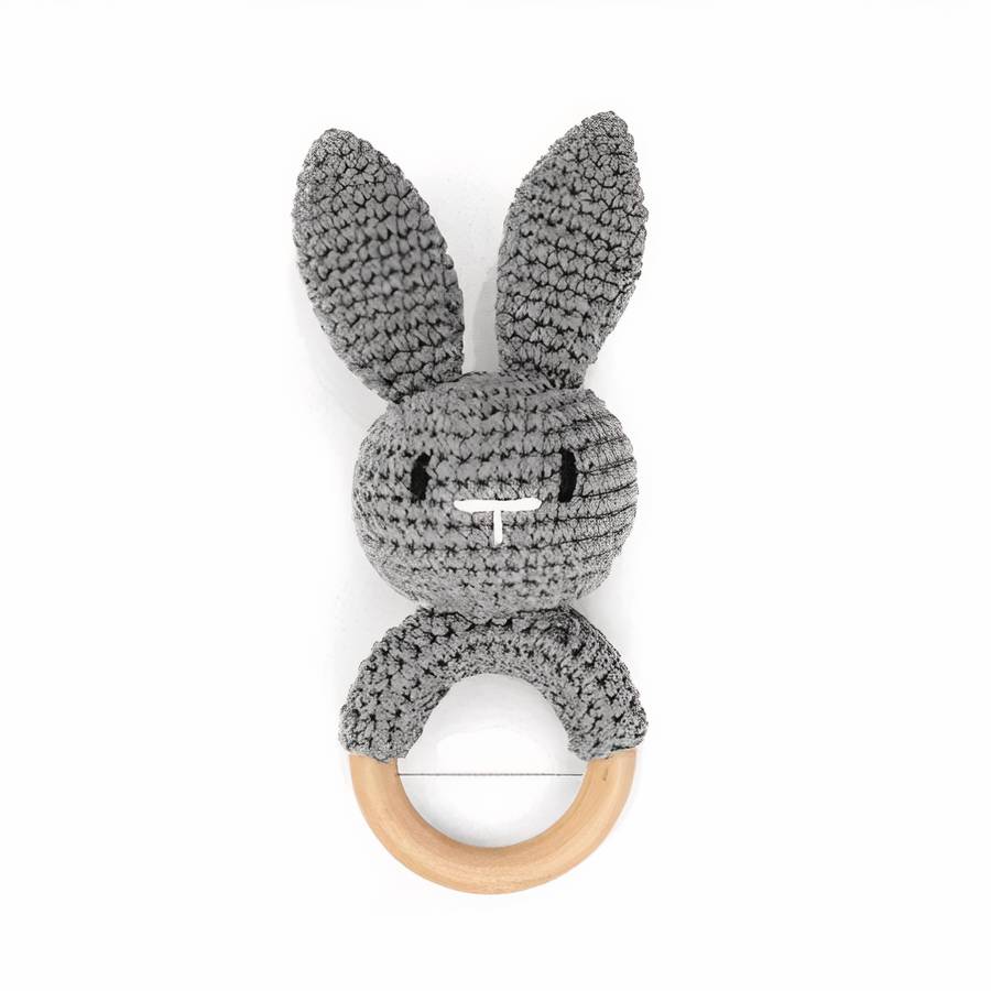 Découvrez le charmant Hochet de dentition en bois en forme de lapin pour bébé, une addition ravissante à notre collection spéciale d'accessoires pour bébés. Ce hochet de dentition, fabriqué en bois et en tissu, arbore un adorable design de tête de lapin.