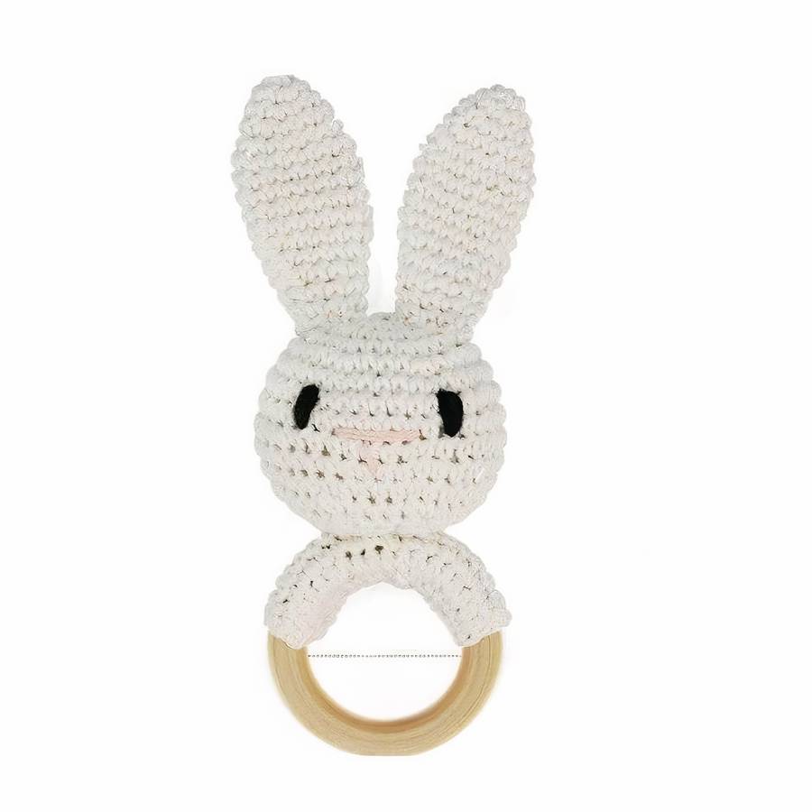 Hochet de dentition en bois en forme de lapin pour bébé